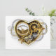 Mechanical, volumetric, steampunk heart with pressure gauge, steel and gold gears on white background. Steampunk style.