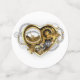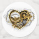Mechanical, volumetric, steampunk heart with pressure gauge, steel and gold gears on white background. Steampunk style.