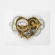 Mechanical, volumetric, steampunk heart with pressure gauge, steel and gold gears on white background. Steampunk style.