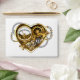 Mechanical, volumetric, steampunk heart with pressure gauge, steel and gold gears on white background. Steampunk style.