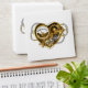 Mechanical, volumetric, steampunk heart with pressure gauge, steel and gold gears on white background. Steampunk style.