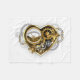 Mechanical, volumetric, steampunk heart with pressure gauge, steel and gold gears on white background. Steampunk style.