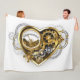 Mechanical, volumetric, steampunk heart with pressure gauge, steel and gold gears on white background. Steampunk style.