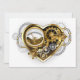 Mechanical, volumetric, steampunk heart with pressure gauge, steel and gold gears on white background. Steampunk style.
