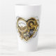Mechanical, volumetric, steampunk heart with pressure gauge, steel and gold gears on white background. Steampunk style.
