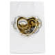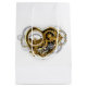 Mechanical, volumetric, steampunk heart with pressure gauge, steel and gold gears on white background. Steampunk style.
