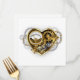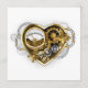 Mechanical, volumetric, steampunk heart with pressure gauge, steel and gold gears on white background. Steampunk style.