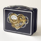 Mechanical, volumetric, steampunk heart with pressure gauge, steel and gold gears on white background. Steampunk style.