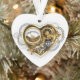 Mechanical, volumetric, steampunk heart with pressure gauge, steel and gold gears on white background. Steampunk style.