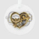 Mechanical, volumetric, steampunk heart with pressure gage, steel and gold gears on white background. Steampunk style.