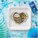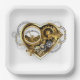 Mechanical, volumetric, steampunk heart with pressure gauge, steel and gold gears on white background. Steampunk style.