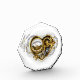 Mechanical, volumetric, steampunk heart with pressure gauge, steel and gold gears on white background. Steampunk style.
