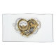 Mechanical, volumetric, steampunk heart with pressure gauge, steel and gold gears on white background. Steampunk style.