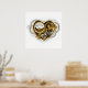 Mechanical, volumetric, steampunk heart with pressure gauge, steel and gold gears on white background. Steampunk style.