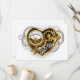 Mechanical, volumetric, steampunk heart with pressure gauge, steel and gold gears on white background. Steampunk style.