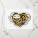 Mechanical, volumetric, steampunk heart with pressure gauge, steel and gold gears on white background. Steampunk style.