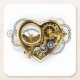 Mechanical, volumetric, steampunk heart with pressure gauge, steel and gold gears on white background. Steampunk style.