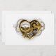 Mechanical, volumetric, steampunk heart with pressure gauge, steel and gold gears on white background. Steampunk style.