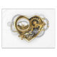 Mechanical, volumetric, steampunk heart with pressure gauge, steel and gold gears on white background. Steampunk style.