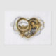 Mechanical, volumetric, steampunk heart with pressure gauge, steel and gold gears on white background. Steampunk style.
