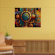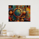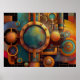 A bold steampunk-inspired geometric artwork featuring metallic circles, brass panels, pipes, bolts, and mechanical structures fused into an abstract industrial composition. The rich blend of teal, copper, and gold tones gives the piece a warm retro-futuristic atmosphere. Perfect for tech accessories, posters, home decor, apparel, and gifts for fans of steampunk, machinery, and industrial design.