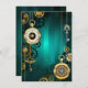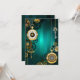 Jewellery, gold watch with a gold chain and keys on a green textural background. Steampunk style.