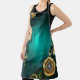 Jewellery, gold watch with a gold chain and keys on a green textural background. Steampunk style.