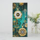 Jewellery, gold watch with a gold chain and keys on a green textural background. Steampunk style.
