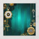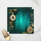 Jewellery, gold watch with a gold chain and keys on a green textural background. Steampunk style.