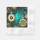 Jewellery, gold watch with a gold chain and keys on a green textural background. Steampunk style.