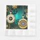 Jewellery, gold watch with a gold chain and keys on a green textural background. Steampunk style.