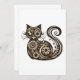 Steampunk-style cat adorned with intricate gears, swirls, and mechanical ornaments on its body and tail. The cat's large, round eyes and flowing patterns give it a futuristic and artistic appearance. The design harmoniously combines natural form with mechanical aesthetics.