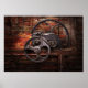 It certainly runs something. Probably part of a cooler machine just out of view. No doubt dangerous, something that could take a finger off like this one. I just love these old machines, no guards, no warnings. It's awesome. Looking for POSTERS of this or any of these designs?