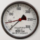 Vintage manometer with needle which is positioned on the number 50. Perfect for someone who has a sense of humour! Customisable Birthday Button. You can easily change text colour, font, size and position by clicking the customise button.