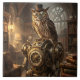 steampunk owl clockwork art tile