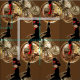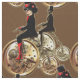 Awesome steampunk penny farthing made from watch parts, with man and woman in cosplay steampunk attire. Time travel pattern by LeahG