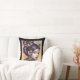 Throw pillow in a portrait of a black haired, steampunk-themed princess with a copper-coloured, metallic, flower in her hair, and ornate metal ornaments