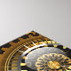 Turquoise lenses with an antique watch with brass gears and golden keys on rusty, brown background. Steampunk style.