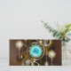 Turquoise lenses with an antique watch with brass gears and golden keys on rusty, brown background. Steampunk style.