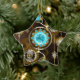 Steampunk Rusty Background with Turquoise Lenses Ceramic Tree Decoration