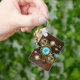 Steampunk Rusty Background with Turquoise Lenses Key Ring