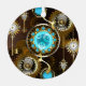 Turquoise lenses with an antique watch with brass gears and golden keys on rusty, brown background. Steampunk style.
