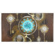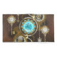 Turquoise lenses with an antique watch with brass gears and golden keys on rusty, brown background. Steampunk style.