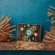 Steampunk Rusty Background with Turquoise Lenses Plaque