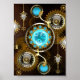 Steampunk Rusty Background with Turquoise Lenses Poster