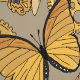 Steampunk skulls patterned wallpaper featuring skulls wearing top hats, cogs, gears, butterflies, dragonflies and hot air ballons in brown and gold tones