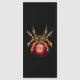 Mechanical, steampunk spider with gold, brass gears and a red glass lamp on a black background. Steampunk style.