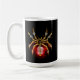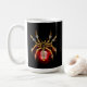 Mechanical, steampunk spider with gold, brass gears and a red glass lamp on a black background. Steampunk style.
