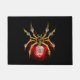 Mechanical, steampunk spider with gold, brass gears and a red glass lamp on a black background. Steampunk style.