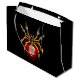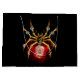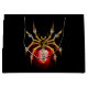Mechanical, steampunk spider with gold, brass gears and a red glass lamp on a black background. Steampunk style.